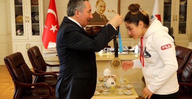 Ağrı İbrahim Çeçen Üniversitesi (AİÇÜ) Rektörü Prof. Dr. Abdulhalik Karabulut, katıldığı çeşitli ulusal ve uluslararası şampiyonalarda birinci olan Beden Eğitimi ve Spor Yüksekokulu (BESYO) öğrencisi Çiğdem KIRVAÇ’ı elde ettiği başarıdan dolayı kutladı.