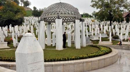 Saraybosna Kantonu İçişleri Bakanlığı’ndan yapılan açıklamada Aliya İzzetbegoviç’in Kovaçi Şehitliği’ndeki anıt mezarına sivri bir cisimle ”kaşikara” (el bombası) yazıldığı belirtildi.