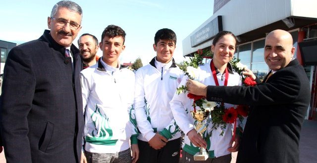 Uluslararası FIS Çocuk Kupası Alp Disiplininde ülkemize bir altın bir de bronz madalya kazandıran Ceren Reyhan Yıldırım, milli takımdan arkadaşları ile birlikte Erzurum Havalimanında çiçeklerle karşılandı.