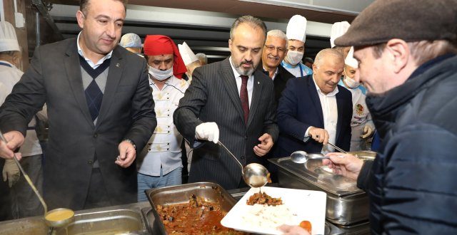 Büyükşehir Belediyesi’nin en önemli sosyal belediyecilik faaliyetlerinden biri olan ve her yıl geleneksel hale getirilen aşevinde yine iftar heyecanı yaşandı. Yemek için sıraya girenlere AK Parti Osmangazi İlçe Başkanı Ufuk Cömez ile birlikte servis yapan Büyükşehir Belediye Başkanı Alinur Aktaş, iftarını da yine vatandaşlarla birlikte yaptı. Ramazan ayı boyunca her gün 4 bin 500 kişiye iftar verilmesi planlanan aşevinde düşüncelerini ifade eden Başkan Aktaş, ihtiyaç sahibi olan ya da evine yetişemeyip orucunu aşevinde açan vatandaşlara Büyükşehir Belediyesi olarak el uzatmanın huzurunu yaşadıklarını ifade etti. İftar yemeğinin düzenlenmesinde emeği olan, katkısı bulunan herkese teşekkür eden Başkan Aktaş, “Fomara başta olmak üzere Görükle, Alemder, Emirsultan, Mehmet Akif Ersoy, Çınarönü, Gürsü Meydanı ve İnegöl olmak üzere 8 noktada her gün 14 bin kişiye iftar dağıtımı yapılıyor. Ayrıca yurt dışında Bulgaristan, Yunanistan, Makedonya, Gürcistan ve Bosna Hersek’te olmak üzere 6 noktada da iftar sofraları kuruyoruz. Her akşam yine aynı şekilde Büyükşehir Belediyesi Görükle Gençlik Merkezi’nde 2 bin 500 öğrencimize iftar veriyoruz. AK Parti Osmangazi İlçe Başkanımız ile birlikte bu akşam buraya misafir olalım istedik. Dün akşam farklı bir sofrada idik. İnşallah Ramazan ayı vesilesiyle yarın akşam bir başka vatandaşımızın evinde orucumuzu açacağız. Böylelikle Bursalı hemşerilerimizle birlikte Ramazan ayını birlikte geçirmenin heyecanını yaşayacağız” dedi.