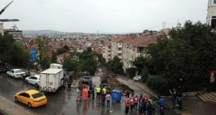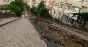 İstanbul’da yoğun yağış sonrası yol çöktü