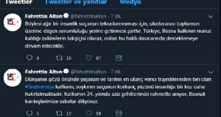 CUMHURBAŞKANLIĞI İletişim Başkanı Fahrettin Altun, 'Srebrenitsa katliamı'na ilişkin, "Türkiye, Bosna halkının maruz kaldığı zulümlerin takipçisi olacak, onları bu haklı davalarında desteklemeye devam edecektir" dedi.
