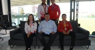 Manisa Büyükşehir Belediyespor Kulübü Başkanı Mevlüt Aktan, cimnastik, judo ve okçuluk branşlarında milli takımlarda tarih yazarak dünya çapında büyük başarılara imza atan şampiyon sporcular Ayşe Begüm Onbaşı, Mert Şişmanlar, Niyazi Gökçen ve Caner Türkkan’la bir araya geldi.