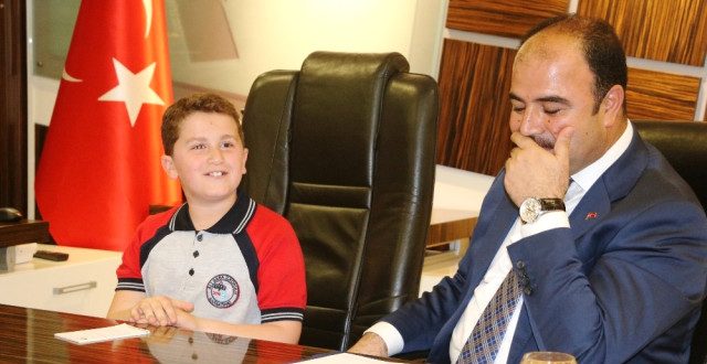 23 Nisan Ulusal Egemenlik ve Çocuk Bayramı, her yıl olduğu gibi bu yıl da renkli görüntülerle kutlandı. Şanlıurfa’da sabah saatlerinde başlayan etkinliklerin ikinci durağı Büyükşehir Belediyesi oldu. Etkinlikler kapsamında Büyükşehir Belediye Başkanı Nihat Çiftçi, Makedonya, Romanya, Gürcistan, Azerbeycan, Kuzey Kıbrıs Türk Cumhuriyeti, Bosna Hersek, Kosova, Kırgızistan ile GAP Bölgesinden Mardin, Siirt, Adıyaman, Şırnak, Gaziantep, Kilis, ve Siirt’ten gelen çocukları makamında ağırladı. Çocuklara sarılarak onların 23 Nisan Ulusal Egemenlik ve Çocuk Bayramı’nı tebrik eden Başkan Nihat Çiftçi, daha sonra günün anısına temsili olarak makamını Şanlıurfa Ali Baba İlkokulu 3. sınıf öğrencisi Muhammed Mustafa Kocaoğlu’na teslim etti. Başkanlık koltuğuna oturan 3. sınıf öğrencisi Muhammed Mustafa, tüm çocukların gününü kutlayarak okulu için sentetik saha talebinde bulundu. Telefonla Büyükşehir Belediyesi Spor Şube Müdürünü arayarak talimatlarını veren Kocaoğlu’nun sohbeti dinleyenleri güldürürdü.