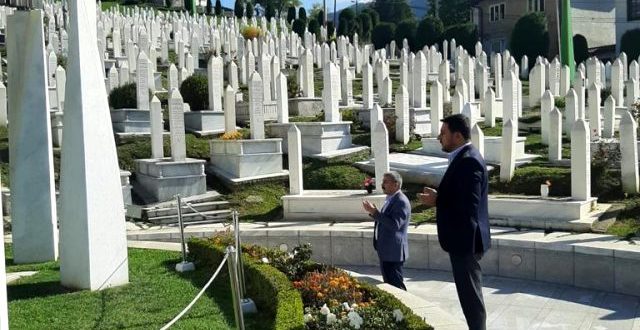 Şehitlik girişinde vatandaşları selamlayan Arı, Meçhul Asker Anıtı’na ve Aliya İzzetbegoviç’in mezarı başında dua etti.