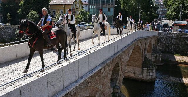 Şehrin ana caddesinin her iki tarafına dizilen halk, ellerindeki Türkiye ve Bosna Hersek bayraklarıyla atlıların geçişine eşlik etti.
