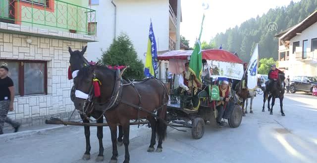 Başlarında fesleri, sırtlarında geleneksel kıyafetleri ve ellerinde taşıdıkları sancaklarıyla sabahın erken saatlerinde Travnik şehri yakınındaki Karaula kasabasına gelen 101 atlı, tekbirler, dualar ve ilahilerle merkezi programın yapılacağı Prusac’a uğurlandı.