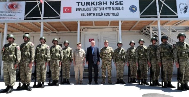 Cumhurbaşkanı Recep Tayyip Erdoğan, Güneydoğu Avrupa İşbirliği Süreci Zirve Toplantısı’na katılmak üzere geldiği Bosna Hersek’te, Avrupa Birliği (AB) ‘Barış Gücü’ bünyesinde Bosna Hersek Türk Temsil Heyet Başkanlığı Milli Destek Birlik Komutanlığında görev yapan askerleri ziyaret etti. Cumhurbaşkanı Recep Tayyip Erdoğan, 8-9 Temmuz tarihlerinde düzenlenen Güneydoğu Avrupa İşbirliği Süreci Zirve Toplantısı’na katılmak üzere Bosna Hersek’e geldi. Erdoğan, Bosna Hersek’in başkenti Saraybosna‘da Butmir Askeri Üssü’ndeki AB Barış Gücü bünyesinde Bosna Hersek Türk Temsil Heyet Başkanlığı Milli Destek Birlik Komutanlığında görev yapan Türk askerlerini ziyaret etti.