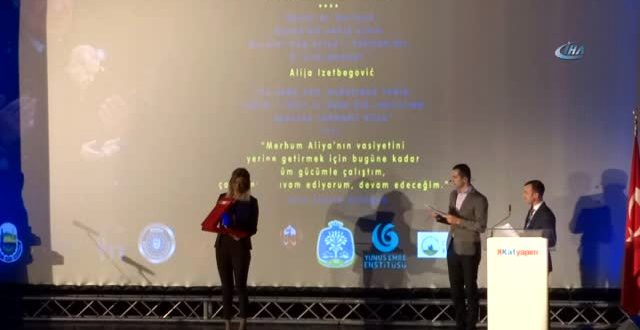 Plaket takdiminin ardından konuşan İzetbegoviç, “Aliya’yı, tarihimizi ve mücadelemizi bize hatırlatan bu film nedeniyle herkese gayretlerinden ötürü teşekkür etmek istiyorum. Ayrıca bizim daimi dostumuz olduğunuz ve hiçbir zaman bizi yalnız bırakmadığınız için teşekkür ediyorum. Bu filmle de ilgili olan ve ilk elden duymak istediğinizi düşündüğüm bir şey eklemek istiyorum. Rahmetli babam son anlarını yaşarken Bosna Hersek’in geleceğine ilişkin derin bir endişeye kapılmıştı. Kendisi o sırada hastanede yatıyordu ve yavaş yavaş şuurunu kaybetmeye başlamış ve böbrekleri iflas etmişti. O zaman dönemin Türkiye Cumhuriyeti Başbakanı olan Erdoğan’ı davet etmişti. Kendisinden Bosna Hersek’e sahip çıkmasını talep ederek Bosna Hersek’i ona emanet etti. Çünkü kendisinde geleceğin büyük liderini görmüştü. Erdoğan da böyle büyük bir mesuliyeti üzerine aldı. Bunu söylerken kendisine öyle bir canlılık gelmişti ki çıktıktan sonra Sayın Erdoğan bana “Babanız iyileşecek” demişti. Bu olay Cuma akşamı olmuştu, babam ise Pazar günü vefat etti. Cumhurbaşkanımız Erdoğan gerçekten de aldığı emanetin sorumluluğunu yerine getiriyor. Kendisiyle bu konuda birlikte çalışıyoruz. Geçen Pazar günü kendisiyle görüştüm ve Pazartesi günü yine kendisiyle bir araya geleceğiz. Kendisinin bizler için her zaman zamanı var ve her zaman bizlere yardım elini uzatmaya hazır. Hem kendisine hem de gayretlerinizden ötürü sizlere teşekkürlerimi sunuyorum” diye konuştu.