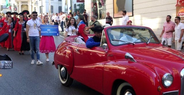 Konuşmanın ardından yabancı halk dansları topluluğu üyeleri, nostaljik arabalarla vatandaşların alkışları eşliğinde kortej yürüyüşü gerçekleştirdi. Yabancı dansçılar arabalardan halka şeker fırlattı.