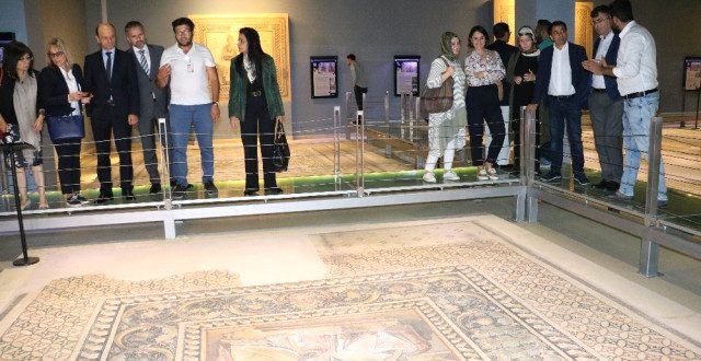 TÜRSAB tarafından organize edilen ve Türkiye’deki büyükelçilere Türkiye’yi tanıtmak için başlatılan gezilerin ilki Gaziantep’e yapıldı. Geziye Hindistan, Çin, Makedonya, Bosna Hersek, Ukrayna, Polonya Büyükelçileri katıldı. ZEUGMA mozaik müzesini gezen Büyükelçiler’e TÜRSAB Başkanı Firuz Bağlıkaya eşlik etti. Türkiye Seyahat Acentaları Birliği TÜRSAB Başkanı Firuz Bağlıkaya ilk gezilerine başladıklarını belirterek, “Türkiye Seyahat Acentaları Birliği olarak bundan sonra periyodik olarak tüm ülke büyükelçilerimizi Ankara’nın o bürokratik ortamından çıkartıp Türkiye’nin kültürel zenginliklerini gezdirip Türkleri daha iyi tanımalarını sağlamak için bir kültürel etkinlik başlatmak istiyoruz. Bu ilk gezimiz Gaziantep ve Şanlıurfa’yı kapsıyor. Büyükelçiler çok memnun kaldı. Çok beğendiler burayı” diye konuştu. – GAZİANTEP