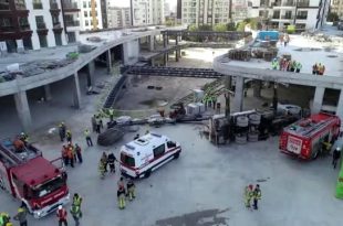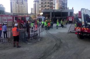 BAĞCILAR'da bir site inşaatında vinç devrildi.