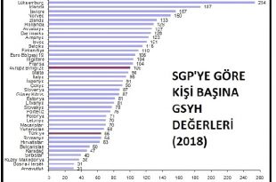 Satınalma gücü paritesine (SGP) göre kişi başına gayrisafi yurt içi hasıla (GSYH) endeksi 2018 yılı geçici sonuçlarına göre 28 Avrupa Birliği (AB) ülkesi ortalaması 100 iken, bu değer Türkiye için 65 oldu ve AB ortalamasının yüzde 35 altında kaldı.