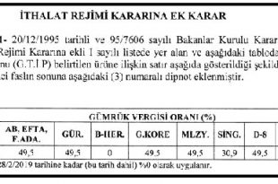 Rg – Kuru Soğan İthalatında Gümrük Vergisi Sıfırlandı.