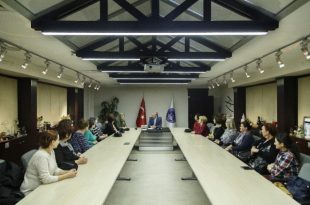 KAYMEK tarafından Bosna Hersek’in Mostar şehrindeki sanat ve mesleki eğitim kurslarına katılan kursiyerler, Büyükşehir Belediye Başkanı Mustafa Çelik’i makamında ziyaret etti.