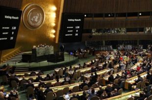 ABD'nin 'Kudüs' kararına karşı Türkiye ve Yemen öncülüğünde hazırlanan tasarı, BM Genel Kurulu'nda 128 lehte oyla kabul edildi. ABD ve İsrail'in başını çektiği 9 ülke ret oyu verdi. 35 ülke ise çekimser kaldı.