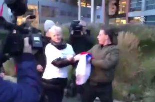"Bosna Kasabı" olarak da adlandırılan eski Sırp komutan Ratko Mladic'in karar duruşmasından önce mahkeme önünde kısa süreli gerginlik yaşandı.