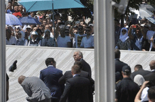 Sırbistan Başbakanı Vuçiç, Srebrenitsa soykırımında hayatını kaybeden 136 kurbanın cenaze törenine katılmak üzere geldiği Potoçari Anıt Mezarlığı’nda protesto edildi. Srebrenitsa soykırımının 20. yılı dolayısıyla düzenlenen cenaze törenine katılmak üzere Potoçari Anıt Mezarlığı’na gelen Sırbistan Başbakanı Aleksandar Vuçiç, buradaki vatandaşlar tarafından protesto edildi. Soykırım kurbanlarının defnedildiği alana girerken ıslıklanan Vuçiç’e bazı vatandaşlar sert cisimler attı. Saldırı sırasında Vuçiç’in gözlüklerinin düştüğü …