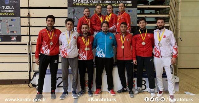 Bosna Hersek’in bağımsızlığının yıl dönümü etkinlikleri çerçevesinde düzenlenen 20. Tuzla Open Uluslararası Karate Turnuvası’na özel davetle katılan Milli Sporcularımız, 11 altın, 2 gümüş ve 3 bronz madalya kazandı.