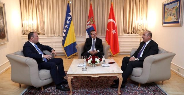 Dışişleri Bakanı Mevlüt Çavuşoğlu, Sırbistan’ın başkenti Belgrad’da Türkiye-Bosna Hersek-Sırbistan Üçlü Dışişleri Bakanları Toplantısı’na katıldı. Sırbistan ve Bosna Hersek Dışişleri Bakanları İvica Dacic ve Igor Crnadak ile birlikte düzenlenen üçlü toplantıda, Türkiye’nin sadece Bosna Hersek ve Sırbistan’a değil, iki ülkeyi birleştiren ortak projelere de destek verdiği belirtildi. – BELGRAD
