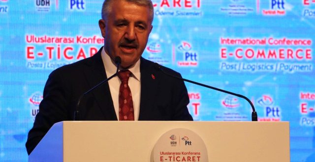 Ulaştırma, Haberleşme ve Teknoloji Bakanı Ahmet Arslan, 2016 yılın global perakendede e-ticaret hacminin 1 trilyon 860 milyar olduğunu ve bu rakamın gün gittikçe arttığını söyledi. Hızı ‘baş döndürücü’ olarak nitelendiren Bakan Arslan, “Sadece 5 sene sonra yani 2021 yılında neredeyse 2.5 kat büyümesiyle 4 trilyon 480 milyar dolara çıkması öngörülüyor” dedi. Ulaştırma, Denizcilik ve Haberleşme Bakanlığı ile PTT’nin Antalya’nın Belek turizm merkezinde düzenlediği Uluslararası E-Ticaret Konferansı’nda “Postanın Dijital Dönüşümü ve E-Ticaret” konulu panel düzenlendi. Bosna Hersek, Tunus, Fas bakanları ile Arnavutluk ve Çek Cumhuriyeti Bakan Yardımcısı, Pakistan devlet sekreterlerinin panelist olarak katıldığı panelin moderatörlüğünü yapan Bakan Ahmet Arslan, yaptığı konuşmada 2016 yılında global perakendede e-ticaret hacminin 1 trilyon 860 milyar dolar olduğunu, bu sayının gün gittikçe büyüdüğünü kaydetti. Rakamın gittikçe attığını kaydeden Bakan Arslan, “Sadece 5 sene sonra yani 2021 yılında neredeyse 2.5 kat büyümesiyle 4 trilyon 480 milyar dolara çıkması öngörülüyor. Keza 2016 e-ticaret payı toplam global perakende pazarının yüzde 8.7’sine tekabül ederken, 2021 yılında bu oran yüzde 15.5’e çıkacak. Rakamlar devasa boyutlarda, e-ticaretin büyüme hızı baş döndürücü” ifadelerini kullandı.