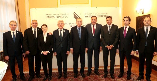 Cumhurbaşkanı Recep Tayyip Erdoğan, Bosna Hersek ziyaretlerine devam ediyor. Cumhurbaşkanı Erdoğan, Güneydoğu Avrupa İşbirliği Süreci Zirve Toplantısı’nda yer alacak heyet başkanları onuruna verilen akşam yemeğine katıldı. Liderler, yemekten önce aile fotoğrafı çekildi. – SARAYBOSNA