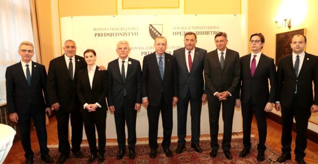 Cumhurbaşkanı Recep Tayyip Erdoğan, Bosna Hersek’te Güneydoğu Avrupa İşbirliği Süreci Zirve Toplantısı’nda yer alacak heyet başkanları onuruna verilen akşam yemeğine katıldı. Cumhurbaşkanı Recep Tayyip Erdoğan, Bosna Hersek ziyaretlerine devam ediyor. Cumhurbaşkanı Erdoğan, Güneydoğu Avrupa İşbirliği Süreci Zirve Toplantısı’nda yer alacak heyet başkanları onuruna verilen akşam yemeğine katıldı. Liderler, yemekten önce aile fotoğrafı çekildi.