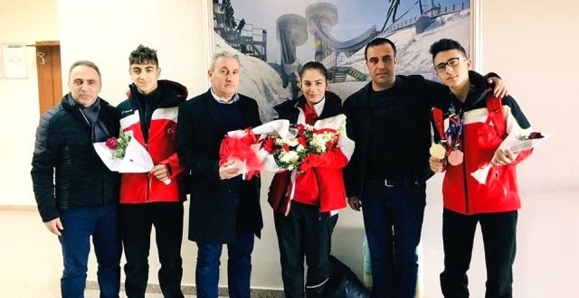 Antrenörler Anna Lukanova ve yardımcı antrenör Duygu Kan Belir yönetiminde Bosna Hersek’teki EYOF 2019’dan dönen Sürat Pateni Milli Takımı, Erzurum Havalimanı’nda çiçekle karşılandı.