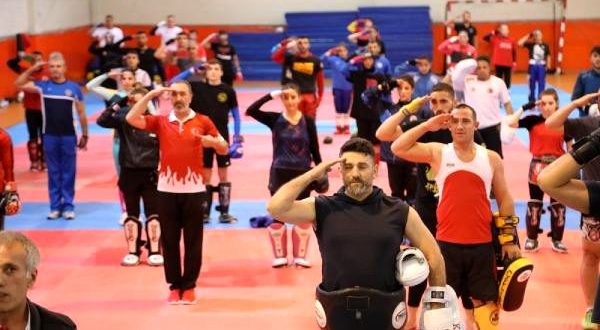 Milli takım antrenörü Mustan Özkaran da, Mehmetçiğin cephede savaş verdiğini, kendilerinin ise ringlerde savaş vereceğini belirterek, “Şu anda Türkiye zor bir dönemeçten geçiyor. Askerlerimiz, kahraman ordumuz cephede savaş veriyor, biz de inşallah ringlerde savaş vereceğiz. Biz ülkemizi, bayrağımızı ve sporumuzu seviyoruz. Bu ülkeye hizmet etmek birileri için görev olabilir ama bizim için bir borçtur. Ne borcumuz biter ne de sevdamız” diye konuştu. $(window).load(function () { var s = document.createElement(“script”), el = document.getElementsByTagName(“script”)[0]; s.async = 1; s.src = “//cdn2.admatic.com.tr/showad/showad.js”; el.parentNode.insertBefore(s, el); });”DÜNYA ŞAMPİYONU OLMAK İSTİYORUZ”Dünya kick boks şampiyonu Nagihan Kalyoncu ise tekrar altın madalya almak istediğini ifade ederek, “2017’de Macaristan’da dünya şampiyonu olmuştum. Allah nasip ederse Bosna Hersek’te yapılacak Dünya Şampiyonası’nda tekrar bayrağımı göndere çektireceğim. Motivasyon kampımızın sonuna geldik. Allah nasip ederse Bosna Hersek’e gideceğiz. Orada, Türkiye’yi ve bayrağımızı en iyi şekilde temsil edeceğimize inanıyorum. Buradan Türk askerine ve Mehmetçiğimize selam ve saygı gönderiyorum” dedi.Avrupa ve dünya şampiyonu Nurettin Diler de şunları söyledi: “Hedefimiz, Bosna Hersek’te yine dünya şampiyonu olup ülkemizin bayrağını en üst seviyeye çıkartmak, İstiklal Marşı’mızı bütün milletlere dinletmek. ‘Barış Pınarı Harekatı’nda bulunan tüm askerlerimize, polisimize, kolluk kuvvetimize buradan selamlarımızı iletiyoruz. Allah yar ve yardımcıları olsun. İnşallah biz de Dünya Şampiyonası’nda madalyaları alarak onlara moral kaynağı olmak istiyoruz.”GÖRÜNTÜ DÖKÜMÜ: Kamptan genel görüntüMilli sporcular antrenmana hazırlanırkenSporcuların asker selamı vermesiMilli takım antrenörü Mustan Özkaran’ın açıklamalarıDünya kick boks şampiyonu Nagihan Kalyoncu ile röportajAvrupa ve dünya şampiyonu Nurettin Diler ile röportajDetay görüntüler