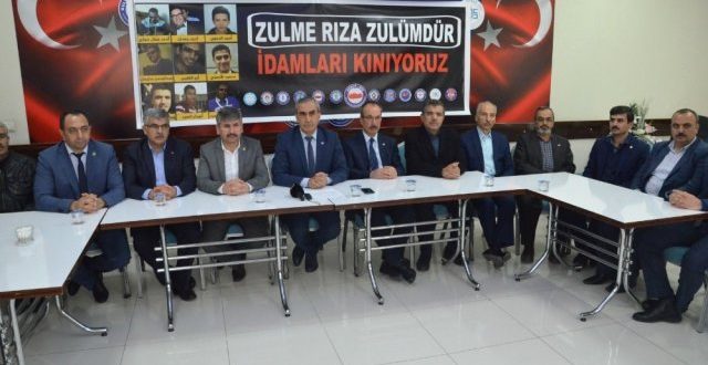 Memur-Sen Malatya İl Temsilcisi Mehmet Bingöl, Eğitim-Bir-Sen Malatya Şube Başkanı Hüseyin Söylemez, 11 hizmet kolu,12 de şube başkanının katıldığı basın toplantısında Mısır’daki idamları kınadı.