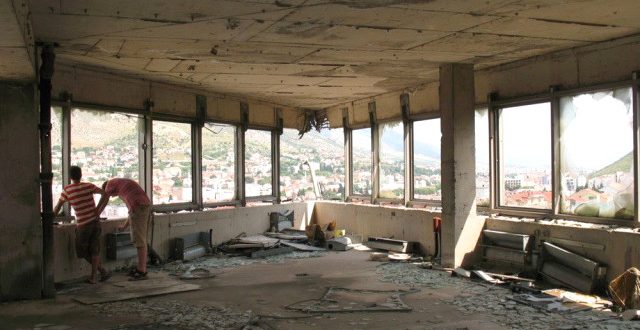 Mostar kentinin hemen dışında yer alan ve Yugoslav Sosyalist Federal Cumhuriyeti döneminde modern bir banka olan bina, karmaşık görünümü sebebiyle savaşa ait bir bina olduğunu hissettirmeyi başarıyor. Bölgenin en uzun binalarından olan Mostar Sniper Tower, hem yıkık dökük görüntüsü hem de kötü geçmişi sebebiyle birçok kişide perili olduğu duygusu uyandırıyor.