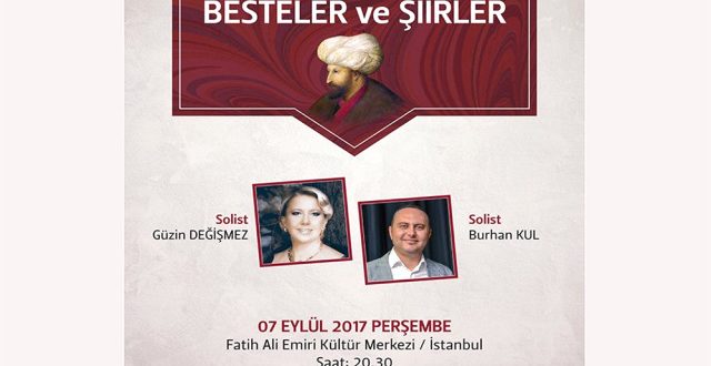 Konser, 7 Eylül 2017 tarihinde saat 20.30’da Fatih Ali Emiri Efendi Kültür Merkezi’de gerçekleştirilecek.