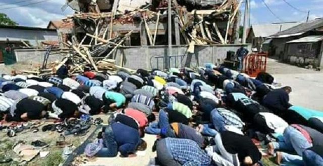 Yapılaşmanın yüzde 80’nin ruhsatsız olduğu şehirde Müslümanların tek camisini yıktı.