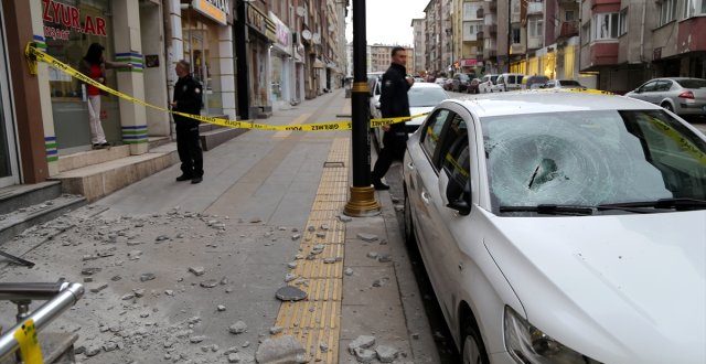 Sivas’ta, park halindeyken üzerine beton parçası düşen otomobilde hasar oluştu.