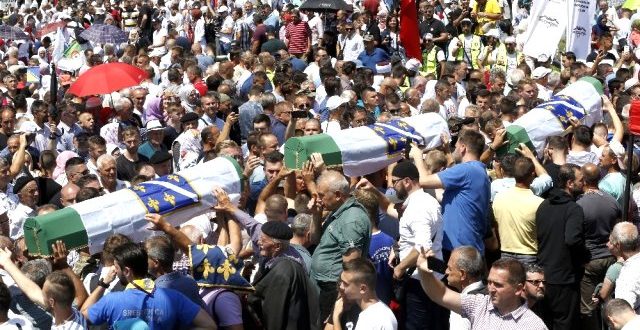 Potoçari’deki cenaze törenine Türkiye başta olmak üzere çeşitli ülkelerden ve Bosna Hersek’in dört bir yanından binlerce vatandaş katıldı.