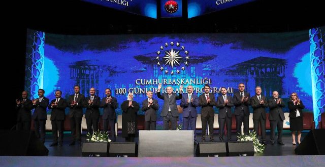 Cumhurbaşkanı Recep Tayyip Erdoğan hukûmetin 100 günlük icraat planını Cumhurbaşkanlığı Külliyesinde açıkladı.