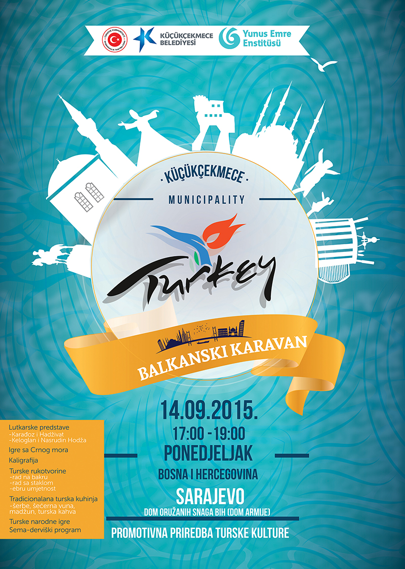 14 Eylül 2015 tarihinde Saraybosna’ya “Balkan Kervanı” ile gelecek olan sanatçılar program kapsamında Türk halk oyunları, Karagöz ve Hacivat oyunu, Sema gösterisi, Türk el sanatları ve geleneksel Türk mutfağını tanıtıp çeşitli gösteriler yapacaklar.