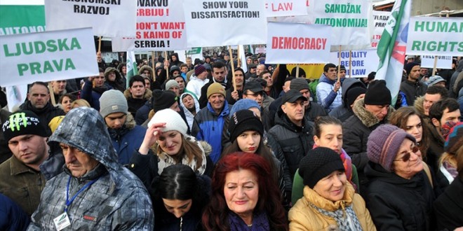 Sancak Demokratik Eylem Partisi (SDA Sancak) ve Sancak Boşnak Demokratik Birliği (BDZ) tarafından düzenlenen protestoya katılan binlerce kişi, “Sancak için özerklik”, “Boşnaklar üzerinde yapılan şiddete son” ve “Şovenizm yapılmasın” yazılı dövizler açtı.