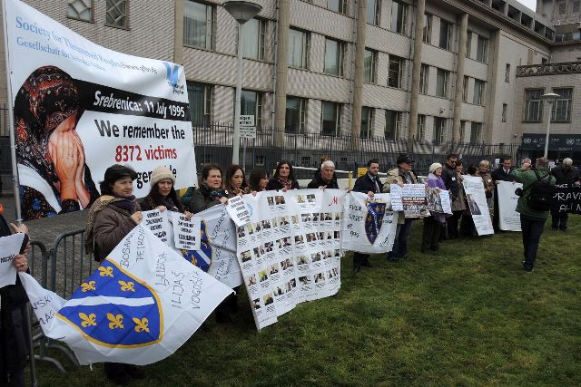 Mahkeme önünde yapılan gösteriye katılan kurban yakınları, Karadzic’in hakettiği cezayı alması çağrısında bulundu.
