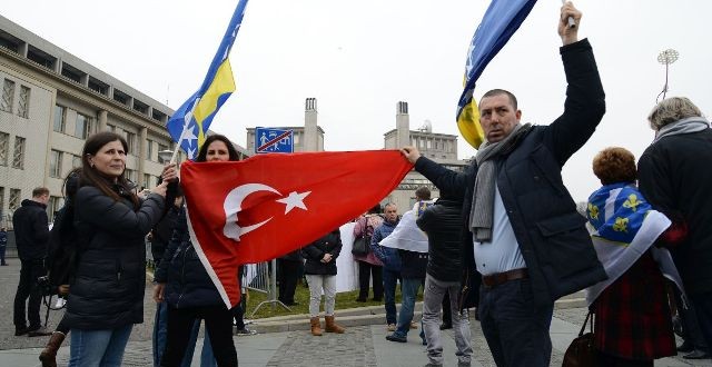 Polisin geniş güvenlik önlemi aldığı gösteriye katılanlar, Bosna Hersek ve Türk bayraklarının yanı sıra Bosna’daki savaşta yaşanan soykırımı anlatan pankartlar taşıdı.