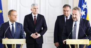Tusk, Batı Balkan turu kapsamında Bosna Hersek Devlet Başkanlığı Konseyi Başkanı Bakir İzetbegovic, Devlet Başkanlığı Konseyinin Hırvat üyesi Dragan Covic ve Devlet Başkanlığı Konseyinin Sırp üyesi Mladen İvanic ile görüştü.