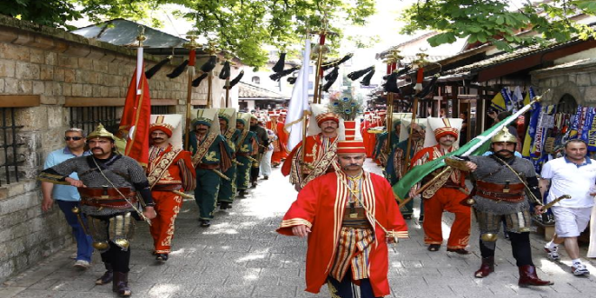Bu yıl 505’incisi düzenlenen “Ayvaz Dede Şenlikleri”ne katılmak üzere Bosna Hersek’e gelen Mehteran Birliği, şehrin merkezi Ferhadiye Caddesi’nden geçerek tarihi Başçarşı’da sahne aldı.